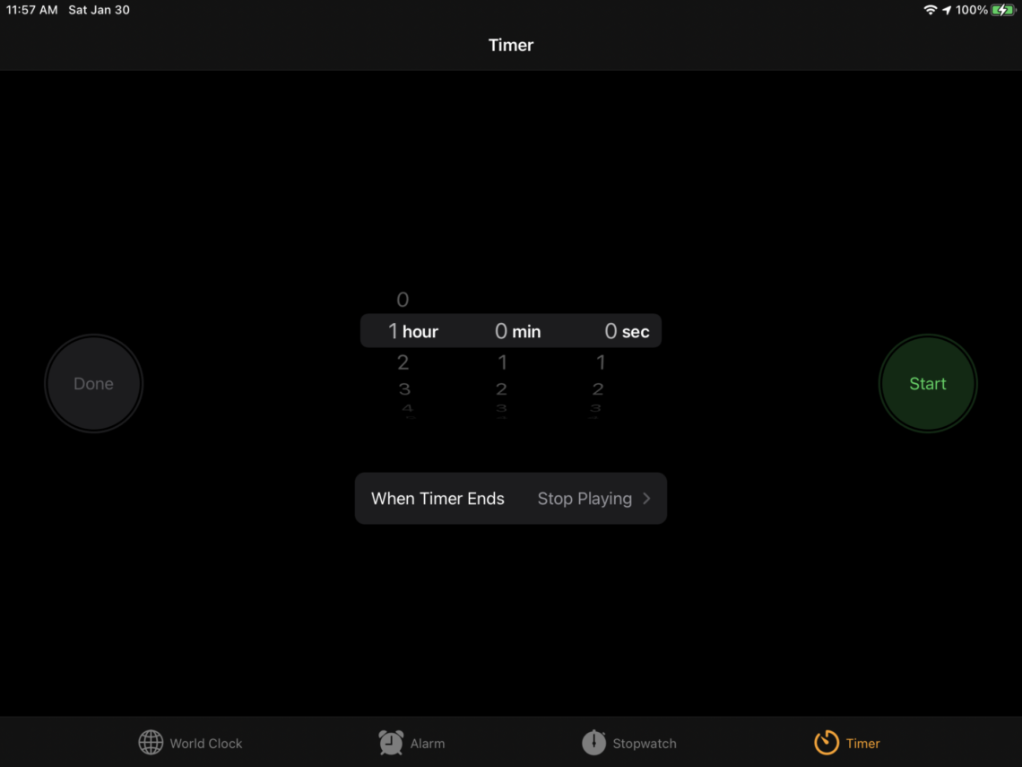 That’s it! Just hit the “Start” button when you return to the timer page and the clock will start ticking down. Once it hits zero, any media app you’re using will stop playing. I use this feature myself anytime I want a little TV to distract me as I fall asleep.