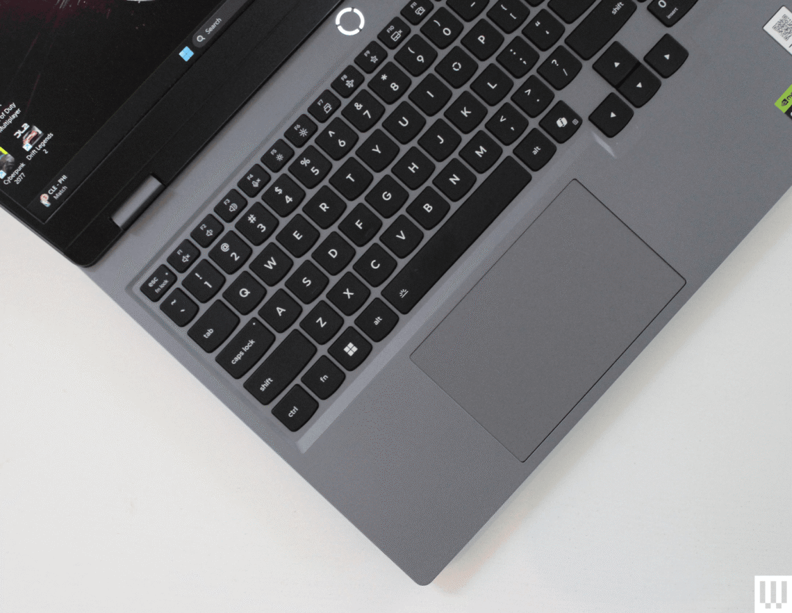 Touch pads and keyboards are often compromised on cheaper machines, but not here. The 1.5-mm keyboard switches feel like they have a low actuation point, which is combined with rigid keycaps, giving it a very precise feel. It might take some getting used to, but I prefer this over the mushy keys found in lots of cheap gaming laptops. The layout is spacious, offering a 10-key number pad, media control, and full-size arrow keys. The only thing it’s missing is a fingerprint reader or an IR camera. The LOQ 15 doesn’t support Windows Hello, so you’ll have to rely on a password. It has a surprisingly responsive, large touch pad, the surface of which feels nice and smooth to drag your finger across. The click is too loud, though.