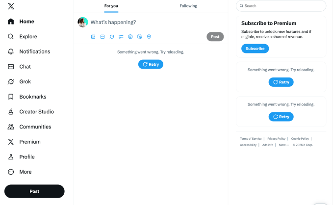 This is the second major outage at X this week, following an earlier technical issue. It comes as the platform faces criticism after Grok, xAI’s chatbot that is integrated into X, has been fulfilling user requests to manipulate real photos of women, and even children, into nonconsensual sexual and violent imagery.
